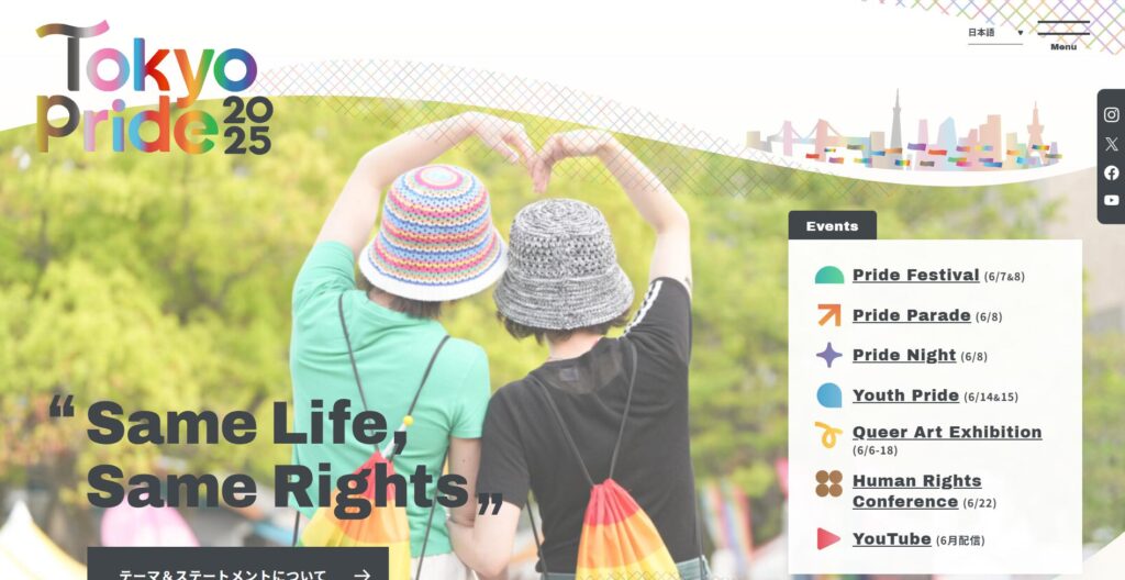 Tokyo Pride(旧:Tokyo Rainbow Pride)は、毎年6月に東京・代々木公園や渋谷・原宿エリアで開催される、日本最大級のLGBTQ+イベントです。