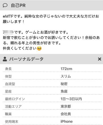 以下はMTFであることを明記している人のプロフィール例です。