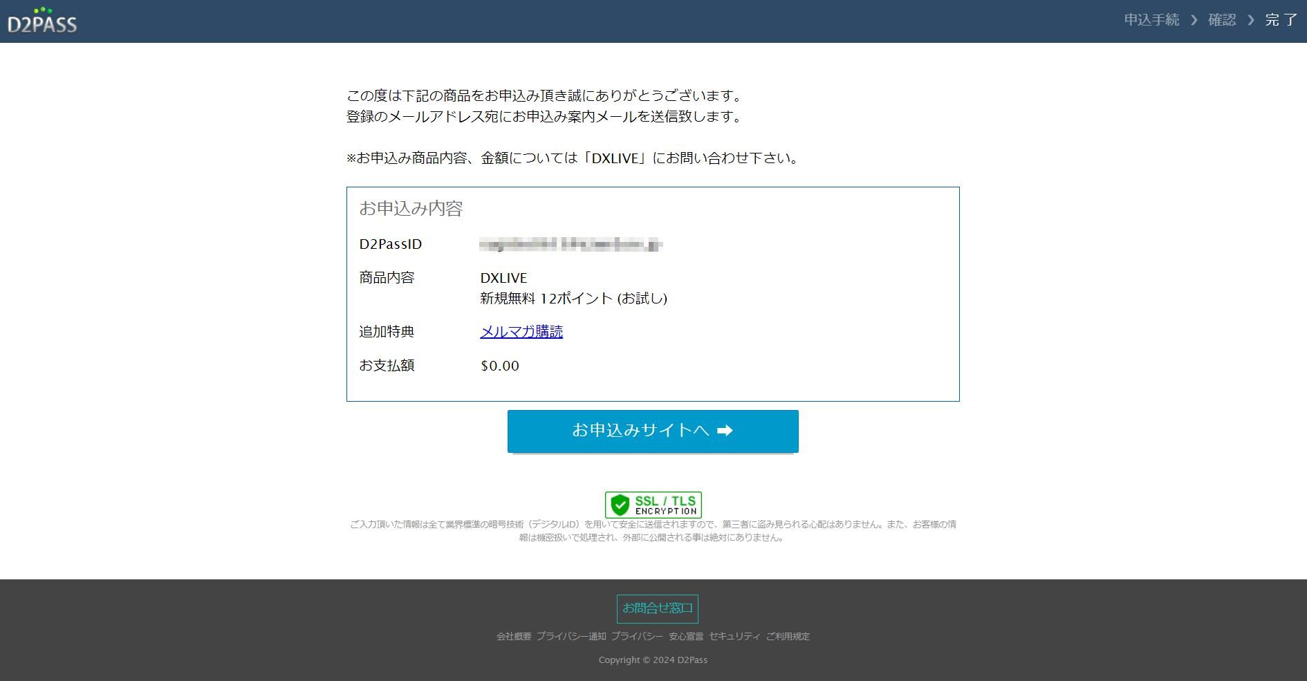 いきなりお金をかけるのは不安…そんな人も安心してください。DXLIVEは新規登録すると無料ポイントがもらえるので、まずはタダで試せちゃいます。