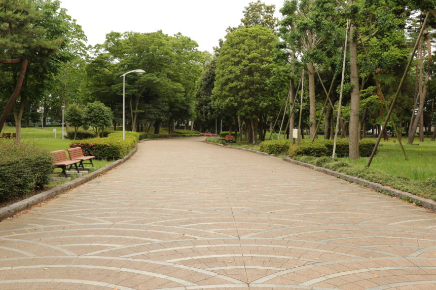 流山市内にある広大な公園で、野球場や体育館などの施設に隣接しています。